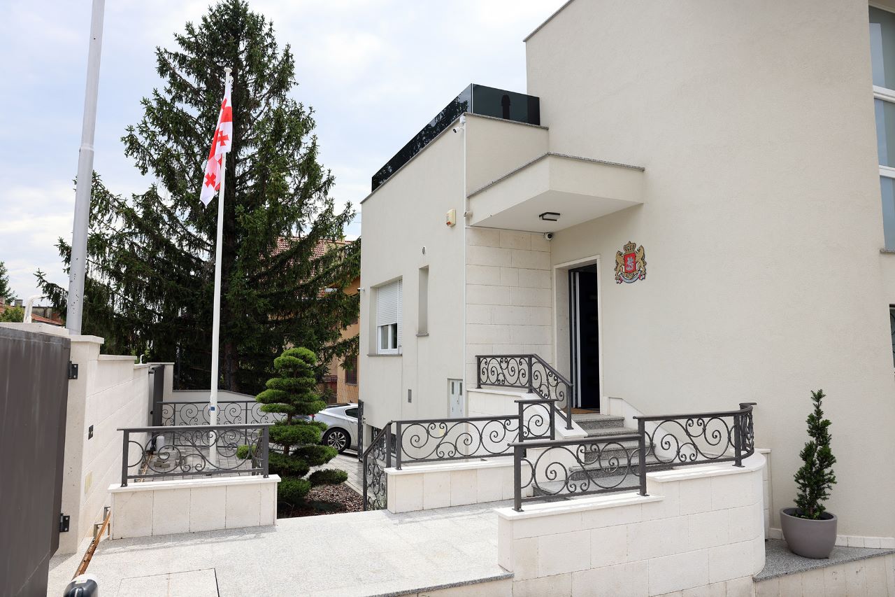 На открытии посольства ансамбль «Херио» исполнил национальные гимны Грузии и Хорватии.
