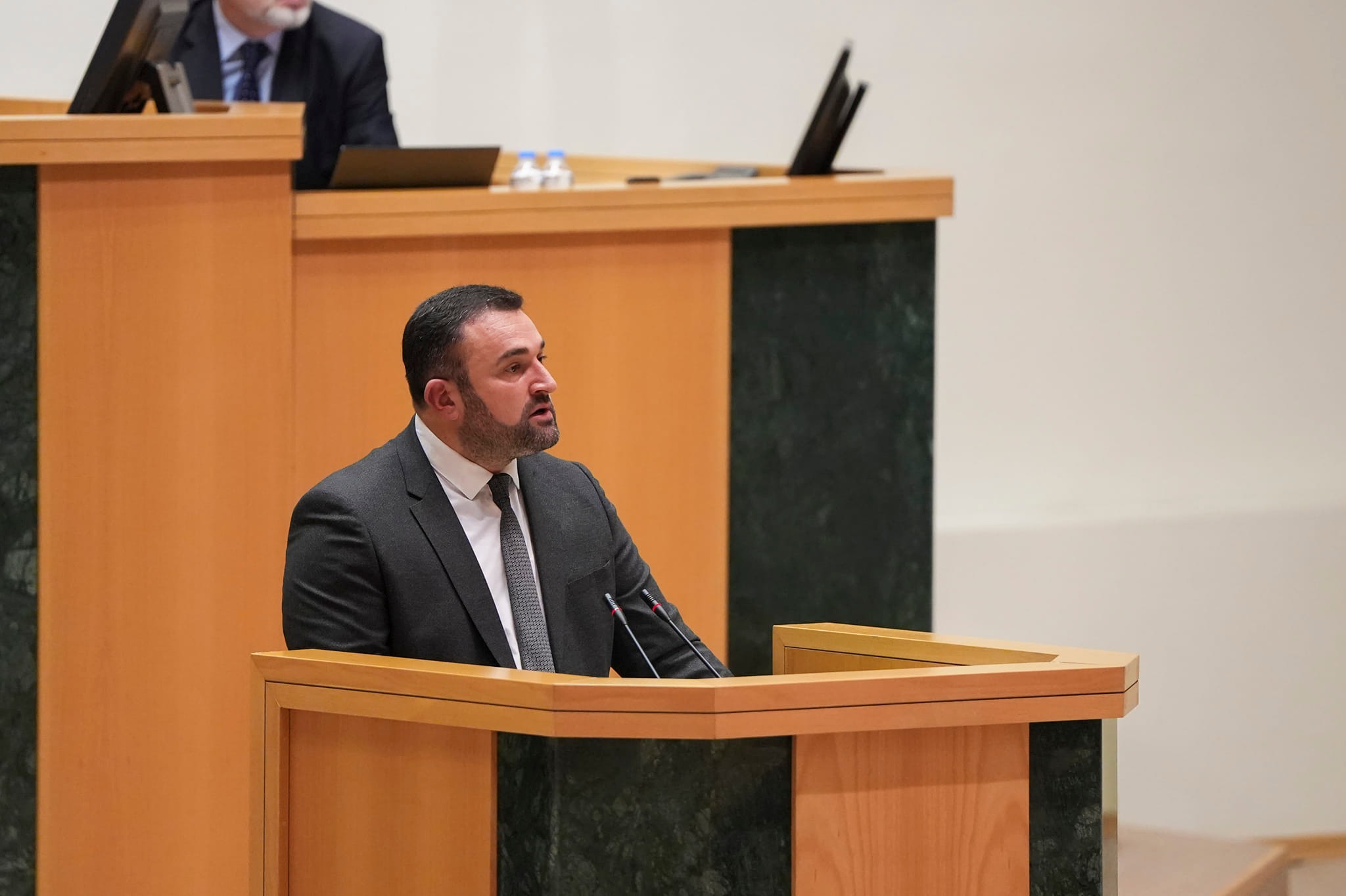Ввиду того, что президент Грузии Саломе Зурабишвили не явилась в парламент, первое заседание парламента открыл старейший по возрасту депутат Ладо Кахадзе.