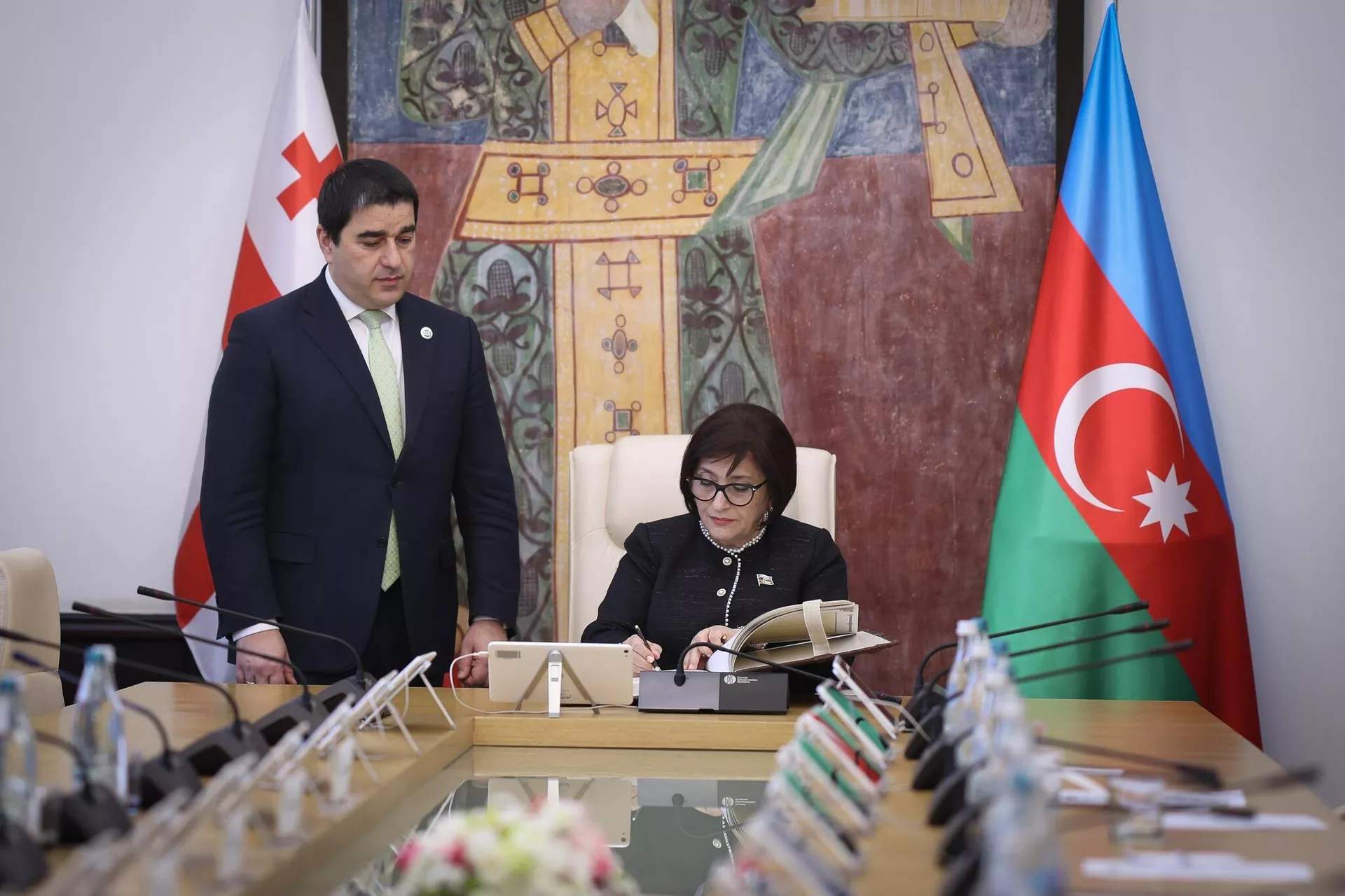 Спикер парламента Грузии Шалва Папуашвили и председатель Милли Меджлиса Азербайджана Сахиба Гафанова подписали меморандум о взаимопонимании между законодательными органами двух стран.