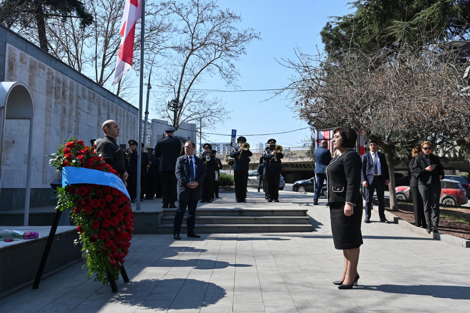 Затем председатель Милли Меджлиса посетила Мемориальный комплекс на Площади Героев. Она возложила венок к памятнику, героям, отдавшим жизнь за территориальную целостность Грузии.