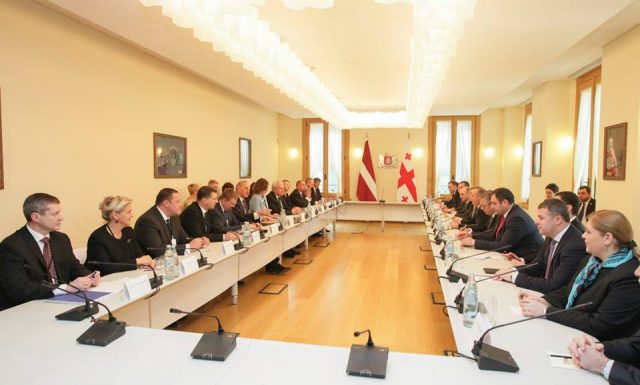 Значительная часть встречи была уделена роли Латвии, как страны будущего председателя ЕС и тому сотрудничеству, которое мы углубим в данном направлении. Мы также беседовали о тех впечатляющих отношениях, которые имеют огромный потенциал для углубления. Естественно, политический формат нашего сотрудничества, является особенно успешным. Это хорошо видно как в двухсторонних отношениях, так и в сотрудничестве в вопросе интеграции в европейские и евро-атлантические структуры. Очень важно, чтобы эти форматы еще более углубились. В данном плане, этот визит имеет решающее значение, ибо подписываются соглашение как с МИД, так и с министерством сельского хозяйства и Минздравом», — заявил Маргвелашвили.