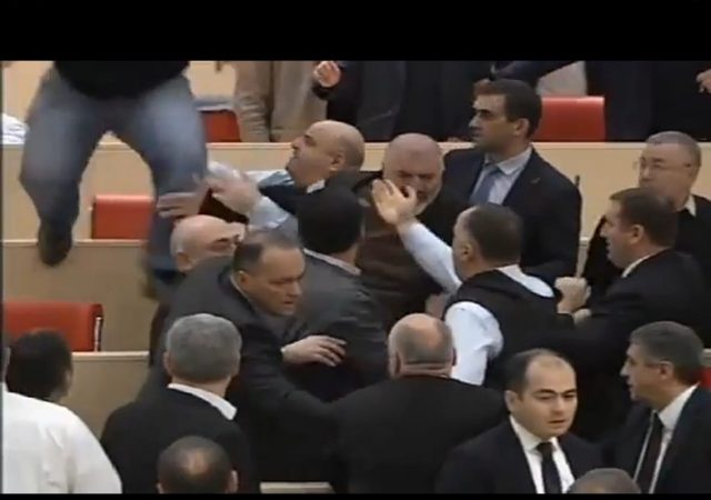 Потасовка произошла в пятницу в парламенте Грузии между представителями парламентского большинства и меньшинства. Причиной конфликта послужили резкие высказывания со стороны представителя меньшинства Акакия Бобохидзе.