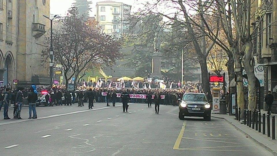 Участники акции почтили минутой молчания память Юрия Вазагашвили. По словам Инашвили, сегодняшняя акция проводится, чтобы донести до властей голос общества, контакт с которым правительство Грузии уже потеряло.