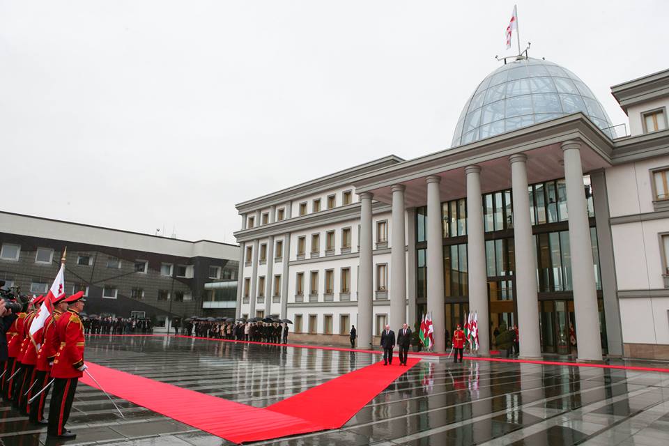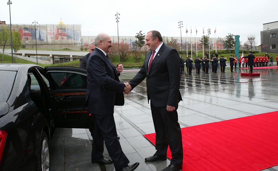 Официальная церемония приветствия президента Белоруссии Александра Лукашенко состоялась в Авлабарской резиденции президента Грузии Георгия Маргвелашвили в Тбилиси в четверг, 23 апреля.