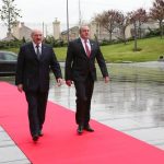 Президента Белоруссии, который прибыл в Грузию с первым, государственным визитом накануне вечером, сопровождают члены правительства – заместитель премьер-министра Михаил Русый, министр иностранных дел Владимир Макей, глава МВД Игорь Шуневич, министр сельского хозяйства и продовольствия Леонид Заяц, министр образования Михаил Журавков, министр промышленности Виталий Вовк.