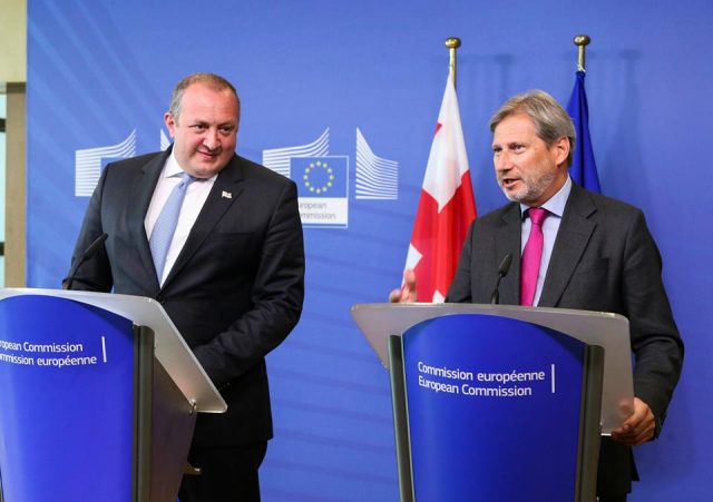 Еврокомиссар по соседской политике и расширению Йоханес Хан встретился сегодня с президентом Грузии Георгием Маргвелашвили, который находится с визитом в Брюсселе.