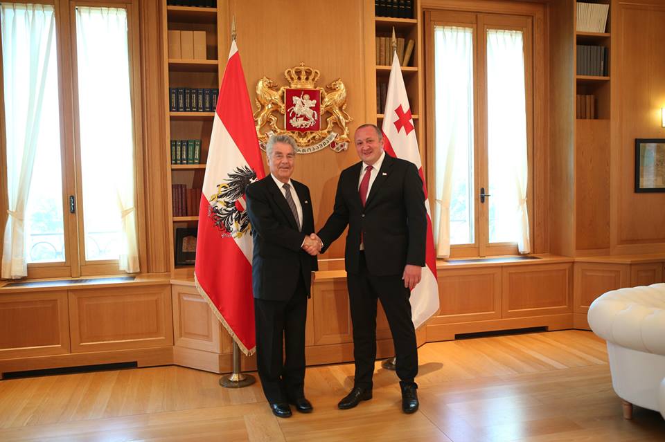 Официальная церемония встречи президента Австрии состоялась в Алабарской резиденции президента Грузии, после чего началась встреча Георгия Маргвелашвили и Хайнца Шульца. Затем главы двух государство проведут совместную пресс-конференцию.