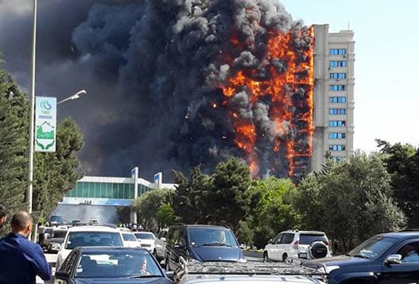 Как сообщает корреспондент Новости-Азербайджан с места происшествия, пожар все еще не удается потушить. Облицовка здания полностью сгорела. Огонь проник во все квартиры. Точное число раненых неизвестно. По неподтвержденным данным, их число превысило 40 человек.