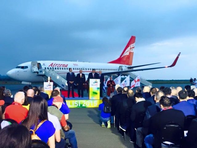 Как заявляют в комитете, чартерным рейсом официального перевозчика «Тбилиси 2015» — компании «Аирзена» олимпийский огонь доставлен в Грузию. Торжественная встреча состоялась в батумском аэропорту, а завершилось это историческое событие грандиозным концертом на площади Пьяцца.