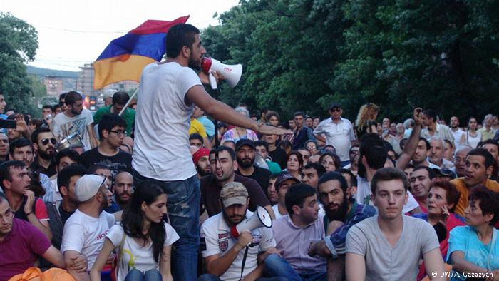 Агентство передает, что полицейские выстроились в несколько рядов, за ними — спецтехника и водометы. Заместитель начальника полиции Еревана Валерий Осипян предложил организаторам акции составить группу из трех человек, которые смогут встретиться с президентом. Однако протестующие отказались.