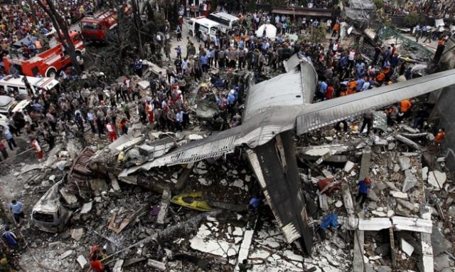 Четырехмоторный военно-транспортный самолет Hercules C-130B 30 июня упал на жилой квартал в юго-западной части столицы индонезийской провинции Северная Суматра примерно через две минуты после взлета с меданской базы ВВС «Сувондо» (Soewondo), пролетев всего лишь около пяти километров.
