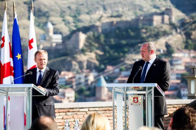 Президент Грузии Георгий Маргвелашвили встретился сегодня с президентом Евросовета Дональдом Туском сначала один на один, а затем в расширенном формате.