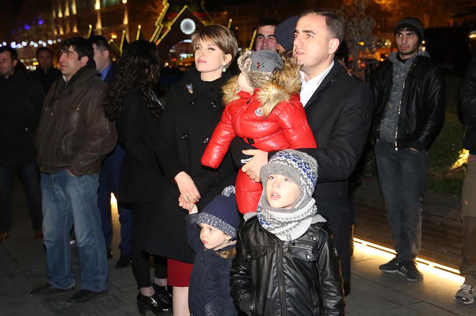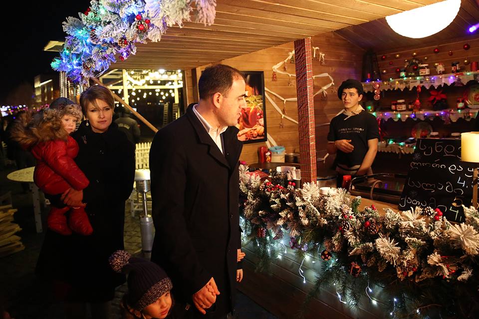 Мэр города Тбилиси Давид Нармания вместе со своей семьей осмотрел на Площади Революции роз, в центре Тбилиси, новогодний город.
