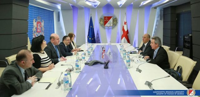 Министр финансов Грузии Нодар Хадури, встретился с распределительным директором Европейского банка реконструкции и развития (EBRD) Франсисом Малеже и директором представительства банка на Кавказе, в Молдове и Белоруссии Бруно Бальванерой.