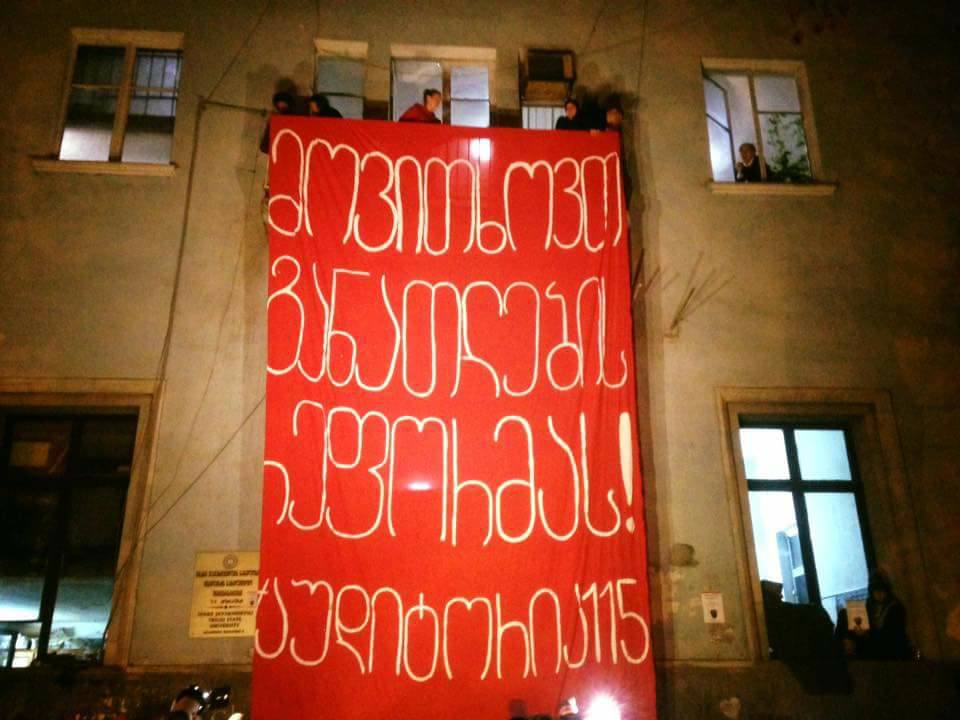 «115-я аудитория» продолжает блокировать шестой корпус Тбилисского госуниверситета. Студенты заняли его вчера вечером.