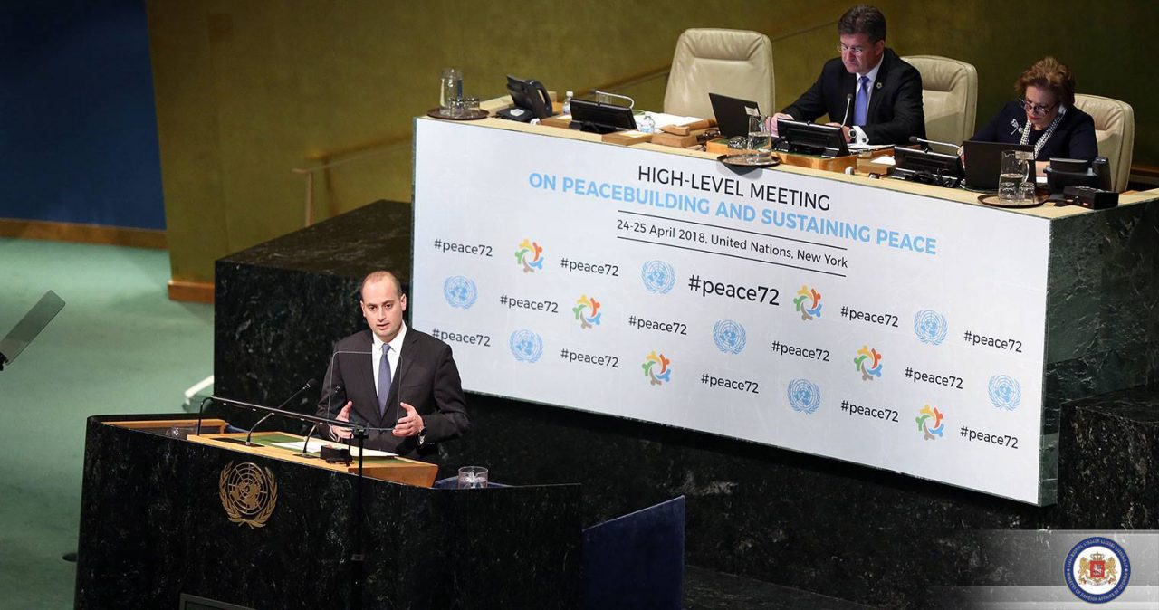 Министр иностранных дел Грузии Михаил Джанелидзе рассказал о мирной инициативе правительства «Шаг к лучшему будущему» на встрече в рамках Генеральной ассамблеи ООН «High level meeting on peacebuilding and sustaining peace», которая проходила 24 апреля в Нью-Йорке.