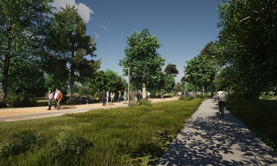 Проект также предусматривает обустройство велосипедных дорожек, пространства для стритбола, ареала для походов и скалолазания. Рядом с парком построят три автостоянки.