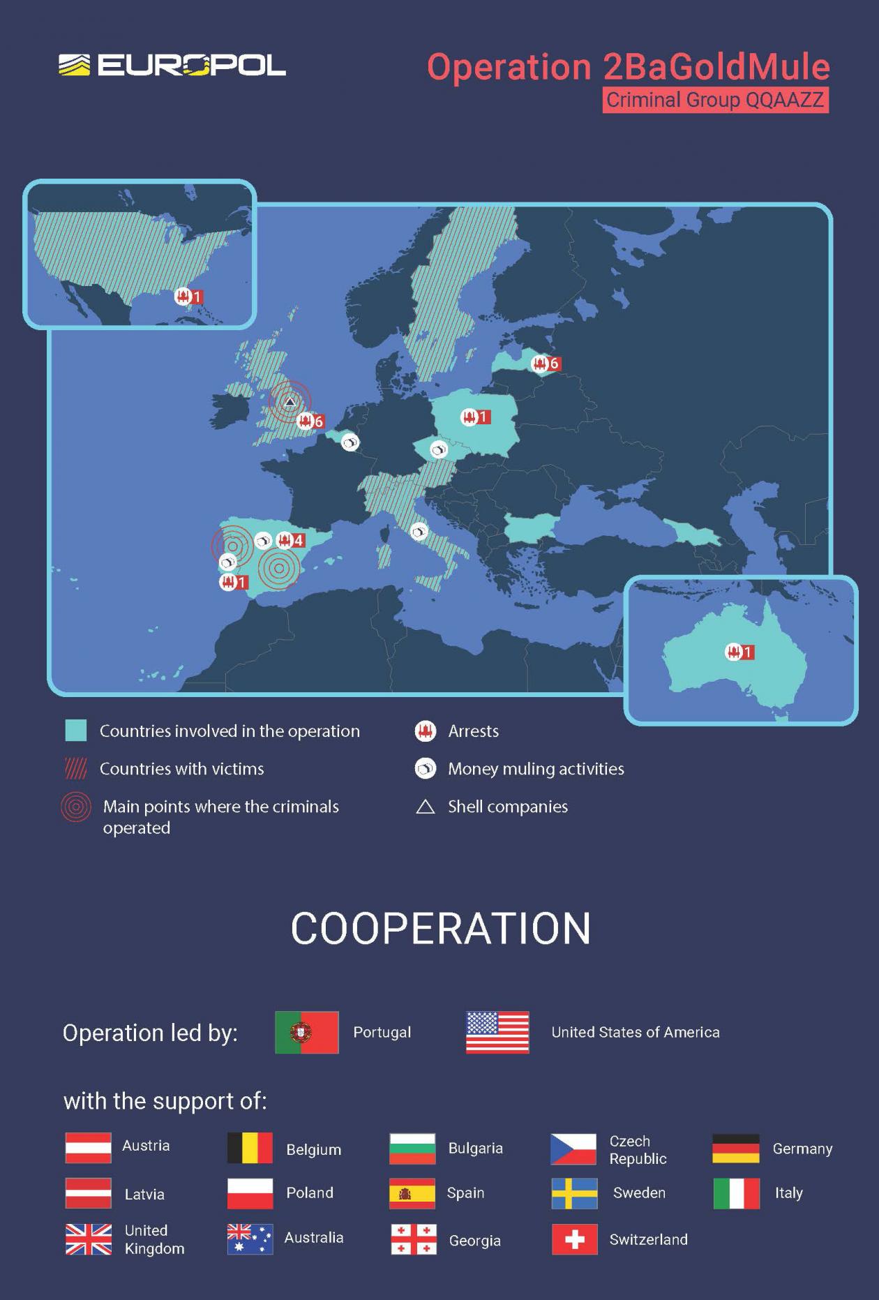 Эта международная проверка стала следствием расследования, проводимого португальской судебной полицией (Polícia Judiciaria) вместе с прокуратурой США в Западном округе Пенсильвании и полевым офисом ФБР в Питтсбурге, а также испанской национальной полицией (Policia Nacional) и региональной каталонской полиция (Mossos D’esquadra). Помимо этого, в расследовании участвуют правоохранительные органы Великобритании, Латвии, Болгарии, Грузии, Италии, Германии, Швейцарии, Польши, Чехии, Австралии, Швеции, Австрии и Бельгии, а Европол осуществляет координацию их действий.