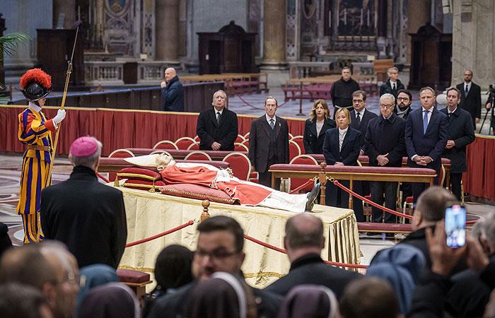 С 1 января тело усопшего понтифика покоилось в часовне монастыря. В этот день попрощаться и помолиться за покой его души в резиденции в сердце ватиканских садов приходили кардиналы, члены Римской Курии, ватиканские работники и монашеские общины.