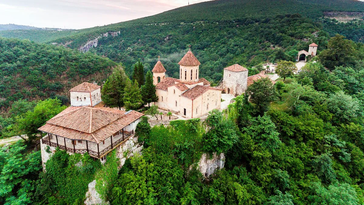 На вершине горы, зажатый между двумя ущельями, находится еще один удивительный монастырь – Моцамета, с которого открываются просто волшебные виды на окрестности. Как гласит легенда, обитель возведена в месте, где были казнены грузинские князья Константин и Давид, отказавшиеся насильственно принять ислам, к чему их принуждали захватчики. Оба правителя впоследствии были причислены к лику святых. В самом центре монастыря, в ковчеге, хранятся мощи Давида и Константина.