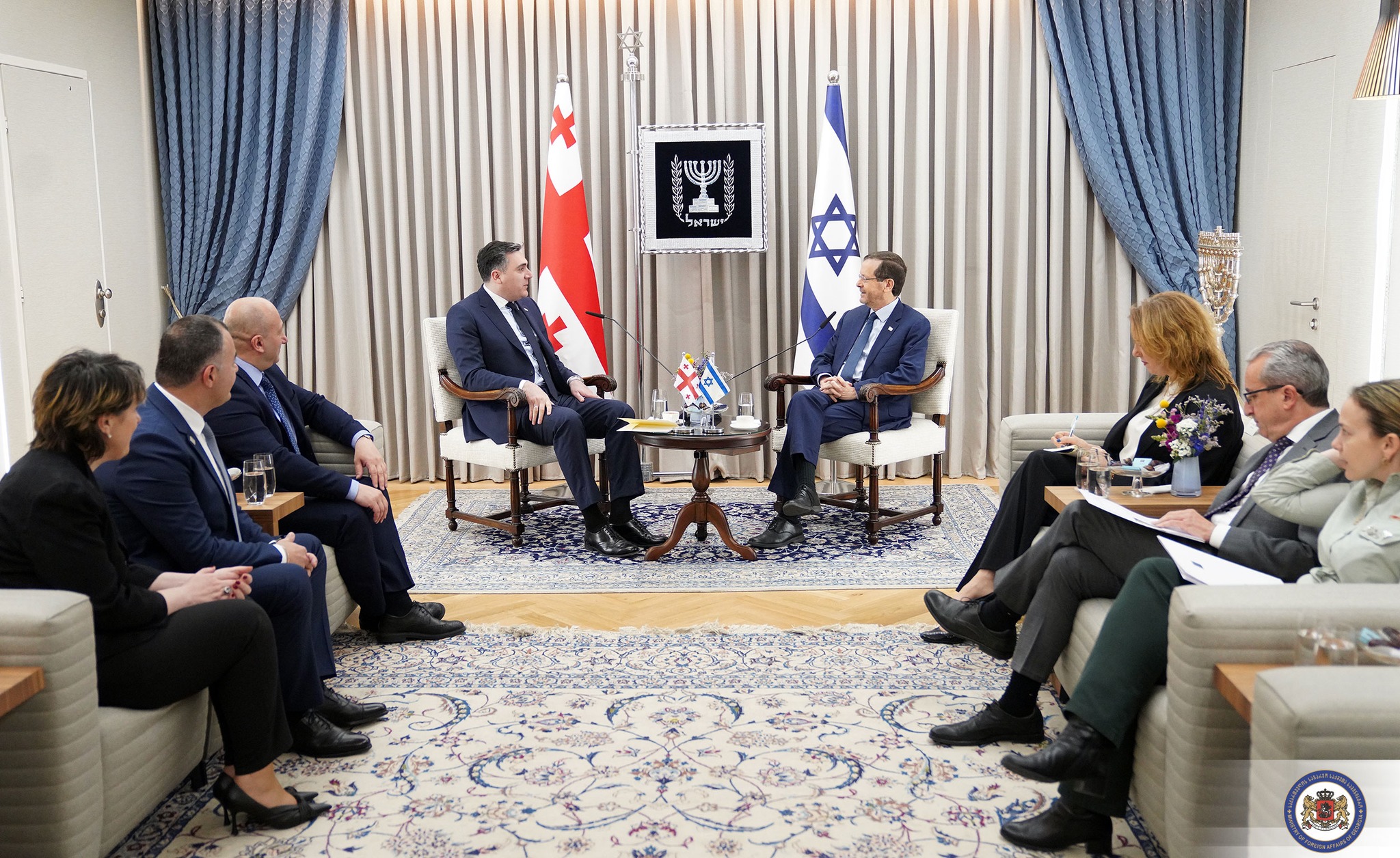 В рамках официального визита в Израиль, министр иностранных дел Грузии Илья Дарчиашвили провел встречу с президентом Израиля Ицхаком Герцогом.